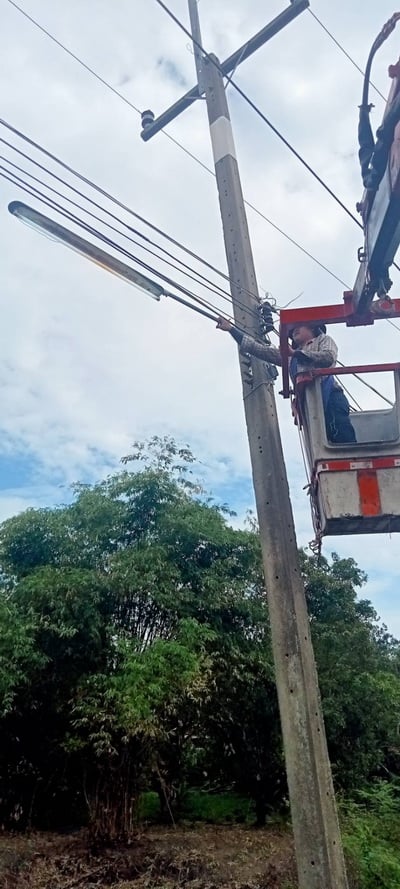 นายทิพย์ชยภล เพทายวิราพันธ์ นายกองค์การบริหารส่วนตำบลคลองเรือ มอบหมายให้เจ้าหน้าที่ อบต. ซ่อมไฟฟ้า หมู่ที่ 6 หมู่ที่ 8